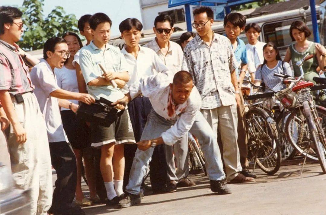 张秋生在楼上,被一个餐厅服务员的二大爷(李琦饰演)当成流氓,各种折磨,情绪崩溃发狂了。在他发狂前,摔倒在地上,把楼下的音箱震掉,正好砸中刘德龙。刘德龙受伤,赵小帅也不想砍他了。