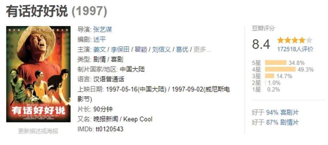 其实,1997年还有一部经典喜剧电影上映,张艺谋的《有话好好说》,票房达4600多万。