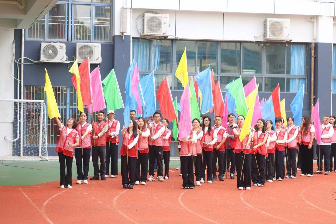 家长义工方阵最后入场,手持五彩旗帜,精神饱满,为体育节注入温暖而坚实的支持力量。