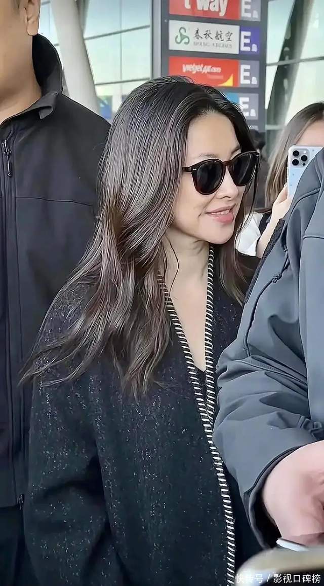 朱珠的皮肤很白皙紧致,化着精致的妆容。她一把长直发披散着,今年41岁的她白头发也不少了,头顶上特别多,很抢眼。最难得的是,作为明星的她不遮不掩大大方方走出来。