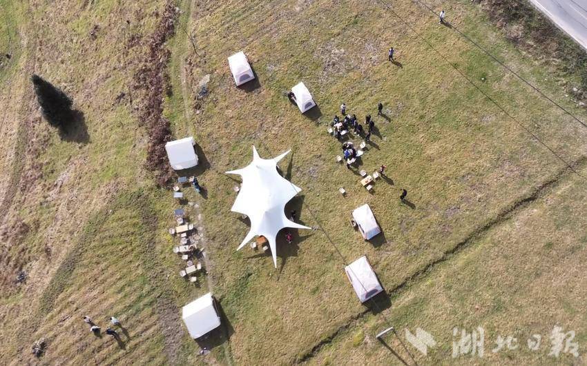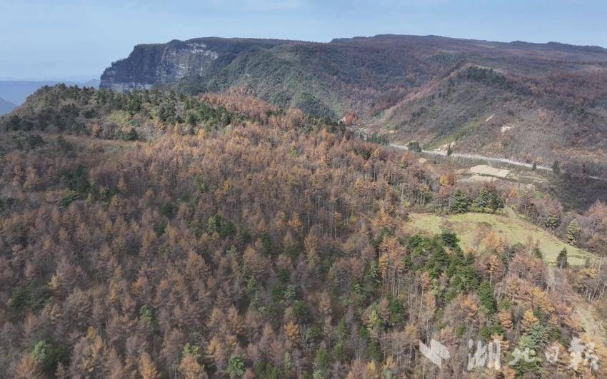 七姊妹山云雾缭绕,一辆辆自驾车沿着盘山公路蜿蜒行驶,仿佛行在云端。行至宣恩县椿木营乡晒坪露营基地,深秋的林海宛如巨幅油画,不少游客或是举起相机定格秋景,或是静坐林间呼吸清新空气。