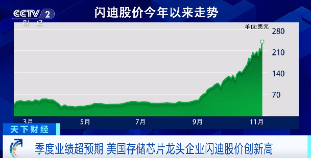近期存储芯片龙头企业,总部位于美国加州的闪迪公司,公布的季度业绩超出了市场预期。在AI数据中心强劲的需求推动下,闪迪上调了业绩指引,股价创下历史新高。当地时间上周五的美股交易中,截至收盘,闪迪股价上涨约15.3%,收于每股239.48美元,今年迄今为止,该股已经上涨超565%。