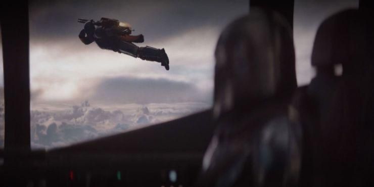 当丁·贾林离开卡巴·贝兹的住所时,一架陆地飞艇在背景中缓缓驶过。这辆飞艇看起来就像卢克·天行者在《新希望》中扮演的塔图因湿气农民驾驶的X-34型号。