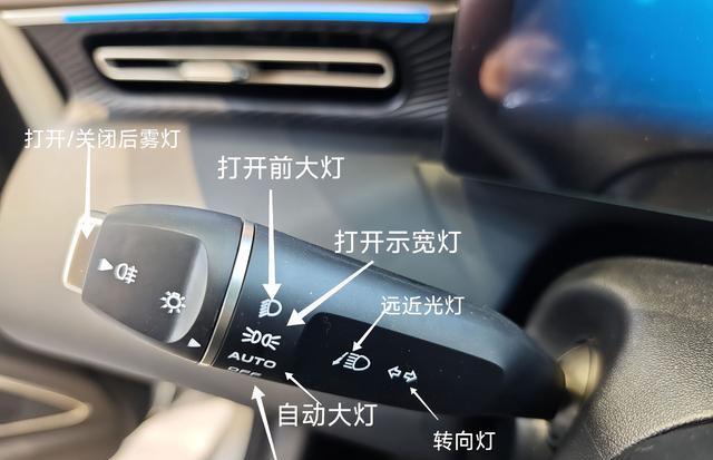 拨杆的控制就比较常规了,有开车经验的朋友们,应该一摸就能上手。这里我就不多做讲解了。功能都在图上。