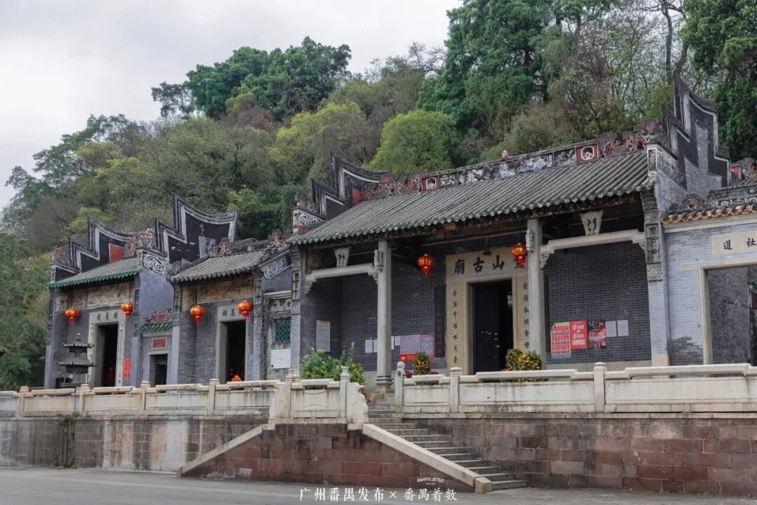 俯瞰番禺的古建筑群,多条生动的鳌鱼跃然其上。始建于明朝的大型古庙群——鳌山古庙宇是典型的岭南风格建筑,建筑严整,外观气派。因山体像鳌,故得名鳌山。
